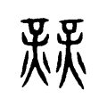 附注朱駿聲《通訓定聲》:「此字从丵从巾,皆象形,非會意。其版如鋸齒,令其相銜不脫,工緻堅實也。」
