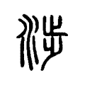 1.会意。从水步。甲骨文字形。中间是水,两边两只脚,象涉水之形。本义:趟水过河。