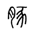 例《說文》:从彖省,象形;从又持肉,以給祠祀。篆文从肉豕作豚,《玉篇》作𧱔,《類篇》作𦜼,《集韻》作𠭣,亦作𧱔,或作豘、𨔵。