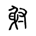 附注商承祚《說文中之古文考》:「射,為篆文,則䠶為古文矣……是䠶从弓从矢,或从弓从矢从又,象張弓注矢而射。此从身,乃弓形之訛。」按:甲骨文、金文、石鼓文像張弓發箭形。後弓訛變作身,手訛變作寸。
